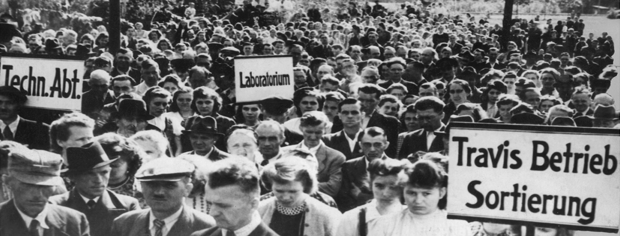Maidemonstration am Chemiestandort Premnitz im Jahre 1948. Quelle: Stadtarchiv Premnitz