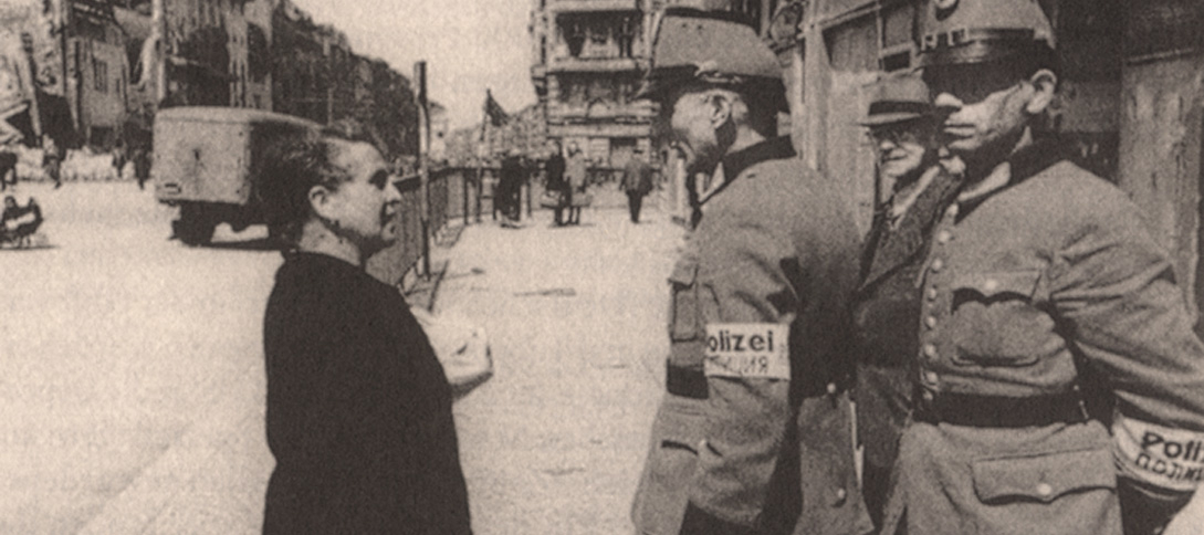 Polizeikontrolle in einer vom Krieg zerstörten Stadt. Sammlung Wodtke Nach den vorliegenden Unterlagen lässt sich vermuten, dass Vieh- und Felddiebstähle im Sommer 1947 einen Schwerpunkt in der regionalen Kriminalität bildeten. So heißt es in einer Pressemitteilung aus dieser Zeit: „Es ist nötig, im Interesse unserer Ernährung gegen Feld- Garten- und Viehdiebstählen mit allen Mitteln vorzugehen und hohe Strafen anzudrohen. Im Schnellgerichtsverfahren kann dabei auf bis zu fünf Jahre Gefängnis erkannt werden. In Verbindung hiermit steht auch eine Polizeiverordnung des Kreisrates Jerichow II, wonach Unberechtigte das Betreten der Feld- und Waldfluren während der Dunkelheit strengstens verboten ist. Nichtbeachtung der Anordnung wird mit Geldstrafe oder Haft geahndet.“
