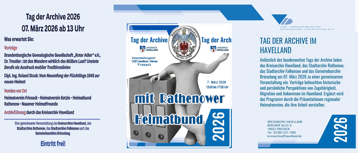 Das Kreisarchiv Havelland mit Sitz in Friesack nahm gemeinsam mit dem Stadtarchiv Falkensee, dem Stadtarchiv Rathenow und dem Gemeindearchiv Brieselang erstmals an dieser nationalen Aktion teil. Zu ihrer Veranstaltung hatten die Archivmitarbeiter den Heimatverein Friesack e. V., den Heimatverein Ketzin e. V., den Heimatbund Rathenow e. V. sowie die Nauener Heimatfreunde e. V. in die Mensa des Oberstufenzentrums (OSZ) in Friesack eingeladen.