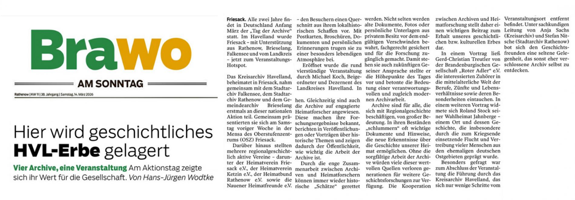 Presseartikel aus dem Brandenburger Wochenblatt vom 14. März 2026