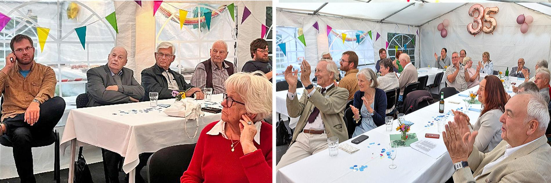 Bild rechts: Tisch rechts die Vereinsmitglieder Dr. F.-L. von Stechow nebst Gattin, Herr Matthies, Vereinsmitglied Hans-Jürgen Wodtke, Nadine Wodtke, Martin Brett