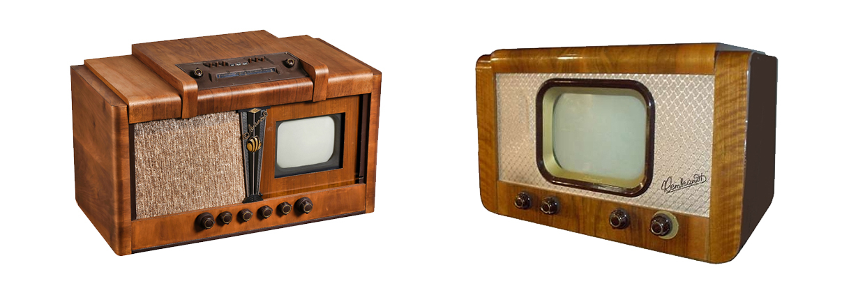 Die ersten seinerzeit in der DDR in Radeberg gefertigten Fernsehgeräte. Der Leningrad T2 basierte auf einem sowjetischen Konzept und wurde als Reparationsleistung fast ausschlich auch dorthin geliefert. (linkes Foto) Beim Rembrandt handelte es sich um eine Radeberger Entwicklung für den DDR-Markt. Collage Wodtke