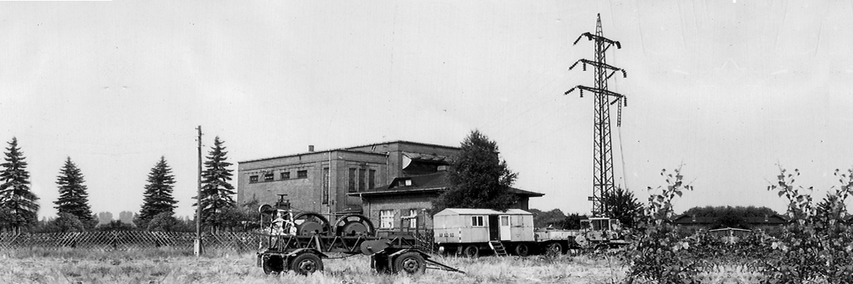 Ansicht des 1925 erbauten 50kV-Umspannwerkes am Viertellandsweg, Aufnahme aus den frühen 1970er Jahren während des Rückbaus des gesamten Komplexes. Foto: Gustav Isensee