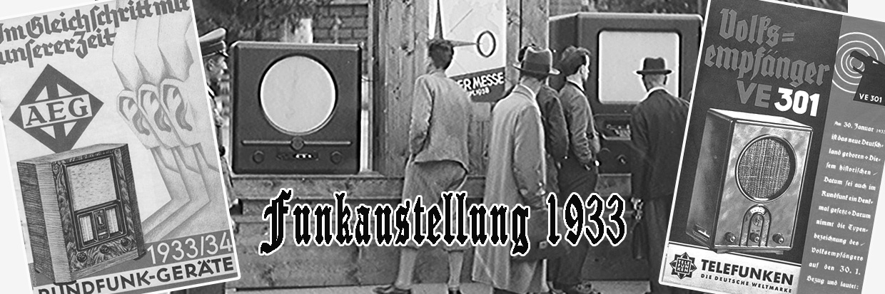 Auf der Funkausstellung in Berlin wurde 1933 der unter der strengen Regie der Nazis von verschiedenen deutschen Herstellern produzierte neue Volksempfänger einer breiten Öffentlichkeit vorgestellt. Bildcollage Wodtke