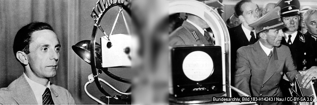 "Der Rundfunk gehört ausschließlich uns", so Goebbels bereits 1933 vor ausgewählten Parteigängern. Bildcollage: Wodtke