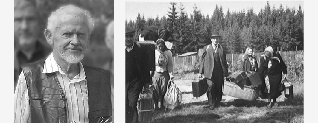 Walter Woop (li.) zu seinem 90 Geburtstag. Bis weit nach Kriegsende irrten immer noch Menschen mit ihrer bescheidene Habe auf der Suche nach einer Bleibe umher. Fotos: Sammlung Wodtke