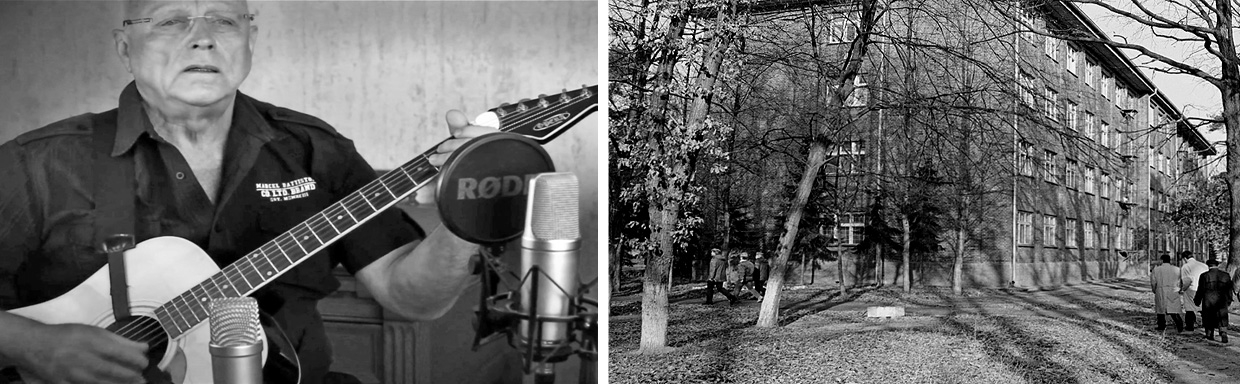 Yuri Korschunow (li) und die einstige Kaserne in Heidefeld an der B 102 zwischen Premnitz und Rathenow, heute WAV Rathenow. Fotos: Korschunow und Stadtarchiv Rathenow/Nl Ralf Kuberski